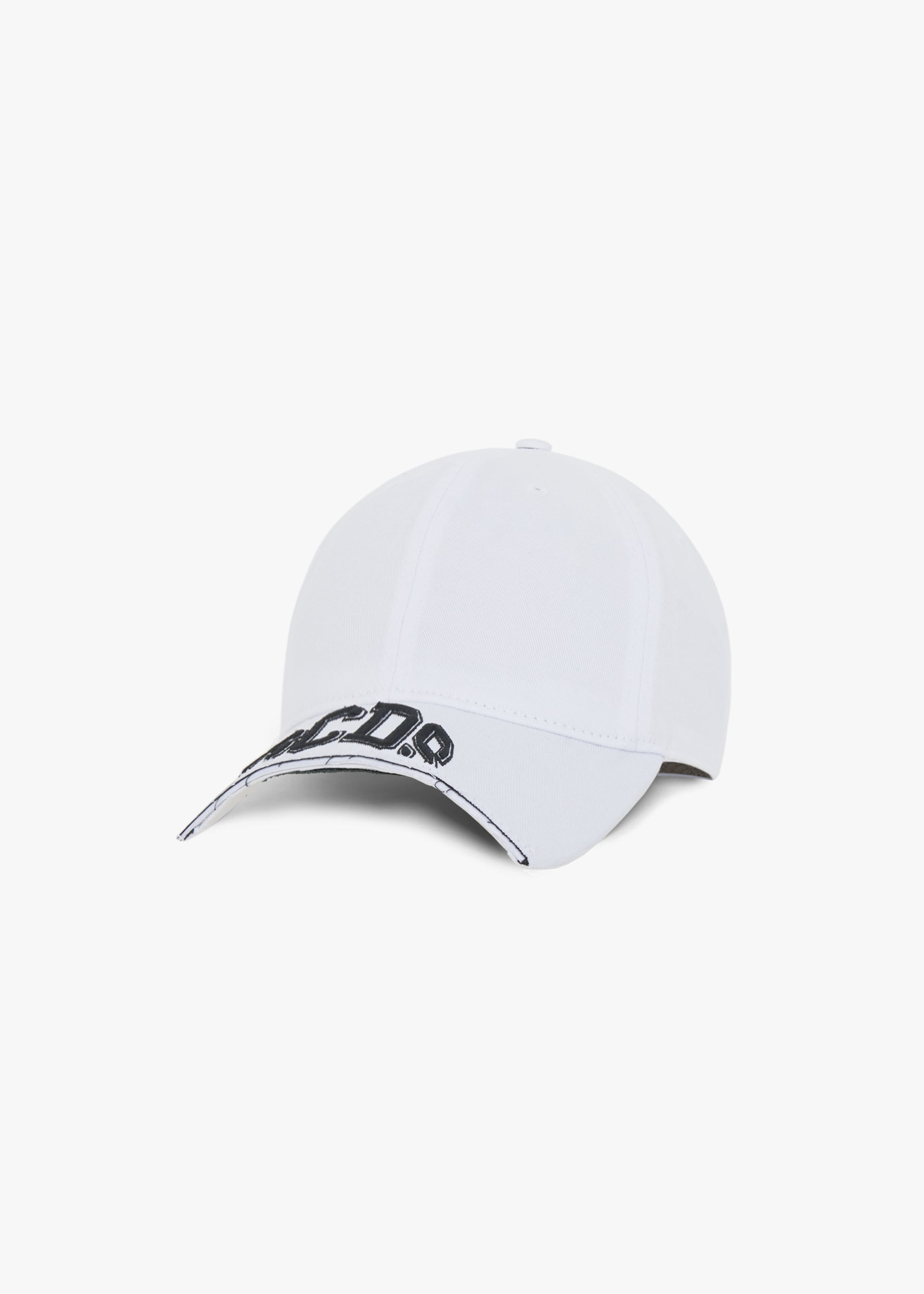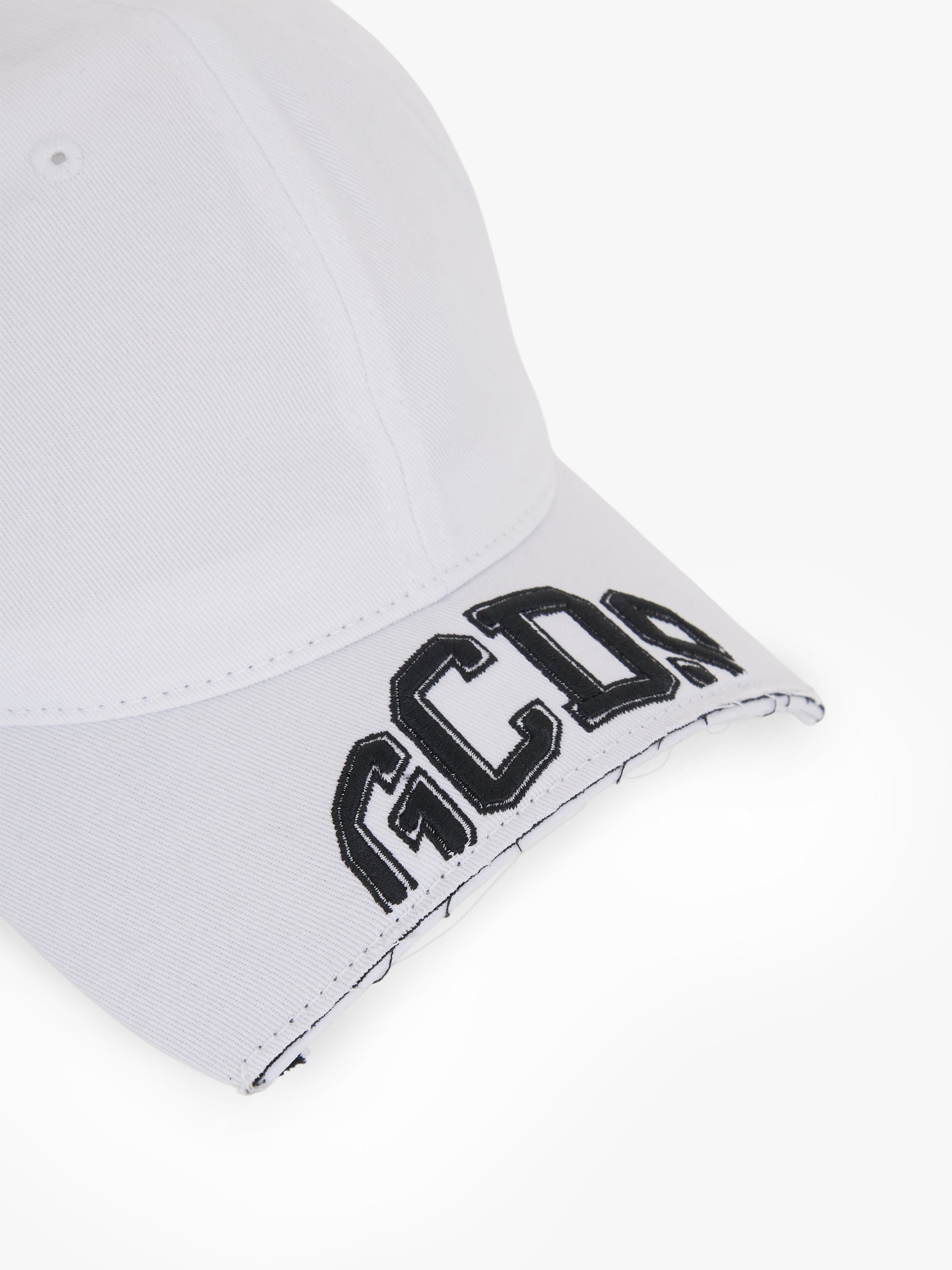 Baseball cap with curved brim and cut-effect GCDS embroidered logo. Panel construction with embroidered eyelets and adjustable hook-and-loop strap.