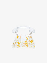 Borsa Call-Me Comma, formato medio, con particolare forma svasata. Realizzata in acrilico trasparente con all'interno delle sigarette. Chiusura a scatto magnetico. Caratterizzata dalla patta curva asimmetrica realizzata in acrilico che simula l'iconica apertura della borsa in pelle e logo GCDS a contrasto. La caratteristica distintiva della borsa è il manico a forma di cornetta. Il manico é trasparente e la borsa presenta sul fondo 4 piedini con finitura nickel lucida.